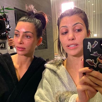 The Kardashians are known for their impeccably contoured faces and flawless makeup looks. However, this particular picture of Kourtney Kardashian, though perhaps not conventionally beautiful, holds a charm beyond what meets the eye. Kourtney shared this fun photo featuring herself and her sister, Kim, both sporting skin masks that pulled their skin so taut it resembled a slightly exaggerated Botox outcome.