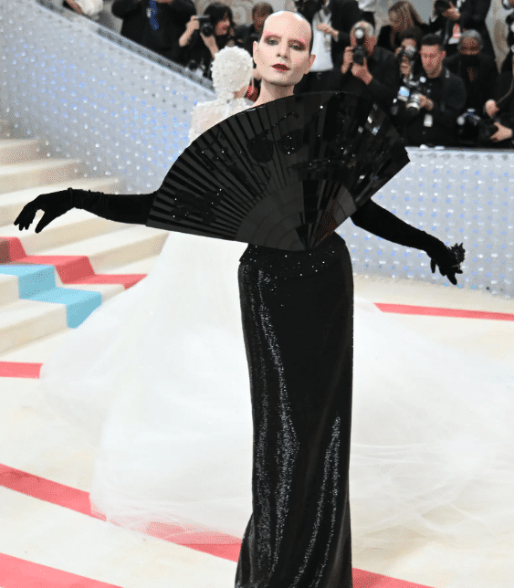 President of the Jujamcyn Theaters on Broadway, Jordan Roth, just attended his fourth Met Gala and was actually right on theme. Paying homage to the late designer Karl Lagerfeld, Roth wore a dress adorned with a sequenced fan, one of Lagerfeld’s most prized accessories.