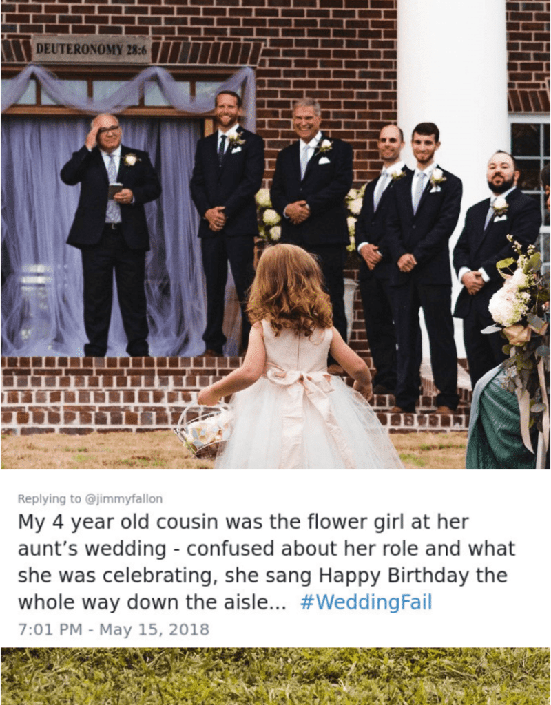 This isn’t really a facepalm story nor is it cringeworthy, but this story is just so sweet, we had to include it on the list. Flower girls are a wedding tradition that many people aren’t willing to skip, and for good reason. It allows you to include your cousin, niece or daughter in the wedding, the guests are beaming at the adorable little helpers, and the girls are always excited to be included.