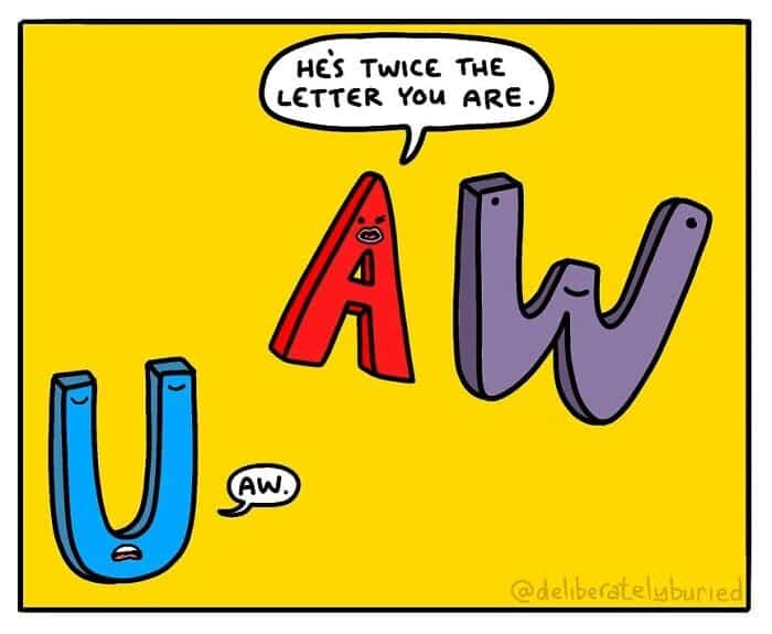 It even evolved from the letter V, given that in Latin V is pronounced the way W is in English. Go figure! Language evolution is fascinating, and the moral of the story is the letter A should actually be shaming V, not U. W is still a chad, though.