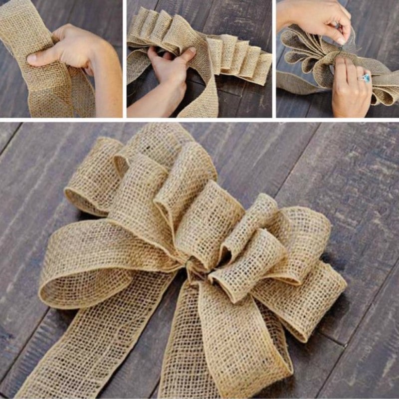 The plain ribbon, or whatever material you choose, will cost less than the pre-manufactured bows you buy at the store. And the bonus is that you can make any size you like, out of any material you want! So if you have a particular decorating theme in mind, it’s much easier to find ribbons to match it than pre-made bows.
