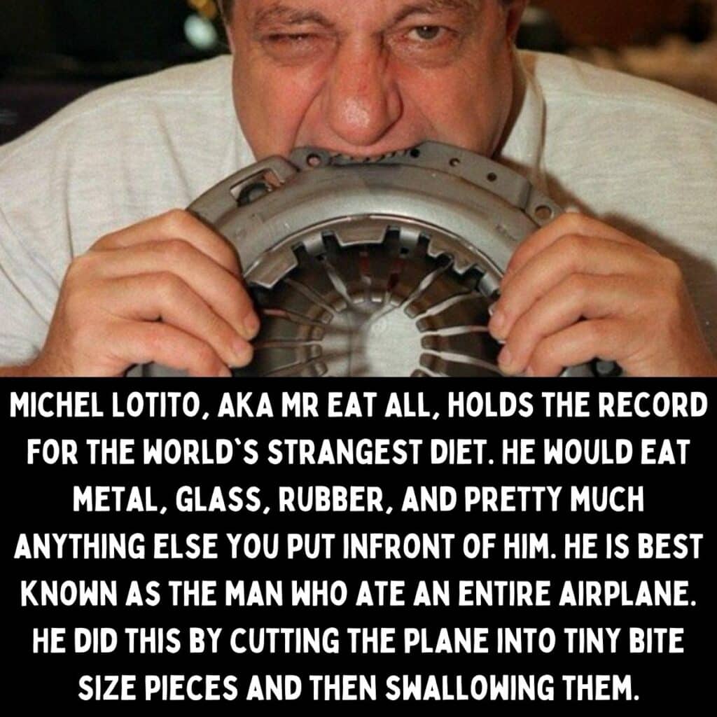Yes, Lotito’s most bizarre feat involved eating an entire plane, which he achieved by meticulously cutting the aircraft into small, bite-sized pieces before swallowing them. His unique digestive system and seemingly insatiable appetite for inedible objects made him a remarkable and somewhat perplexing figure in the world of record-breaking feats, earning him the questionable nickname “Mr. Eat All.”
