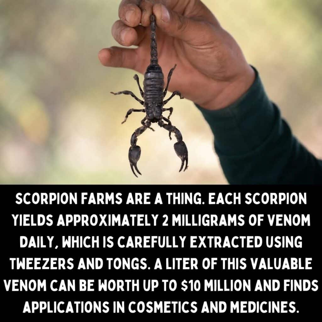 Scorpion farms may sound like something out of a sci-fi movie, but they are indeed a real thing. These unique facilities raise scorpions for their venom, which is carefully extracted using tweezers and tongs. Surprisingly, each scorpion yields a mere 2 milligrams of venom daily, but collectively, it can add up significantly.