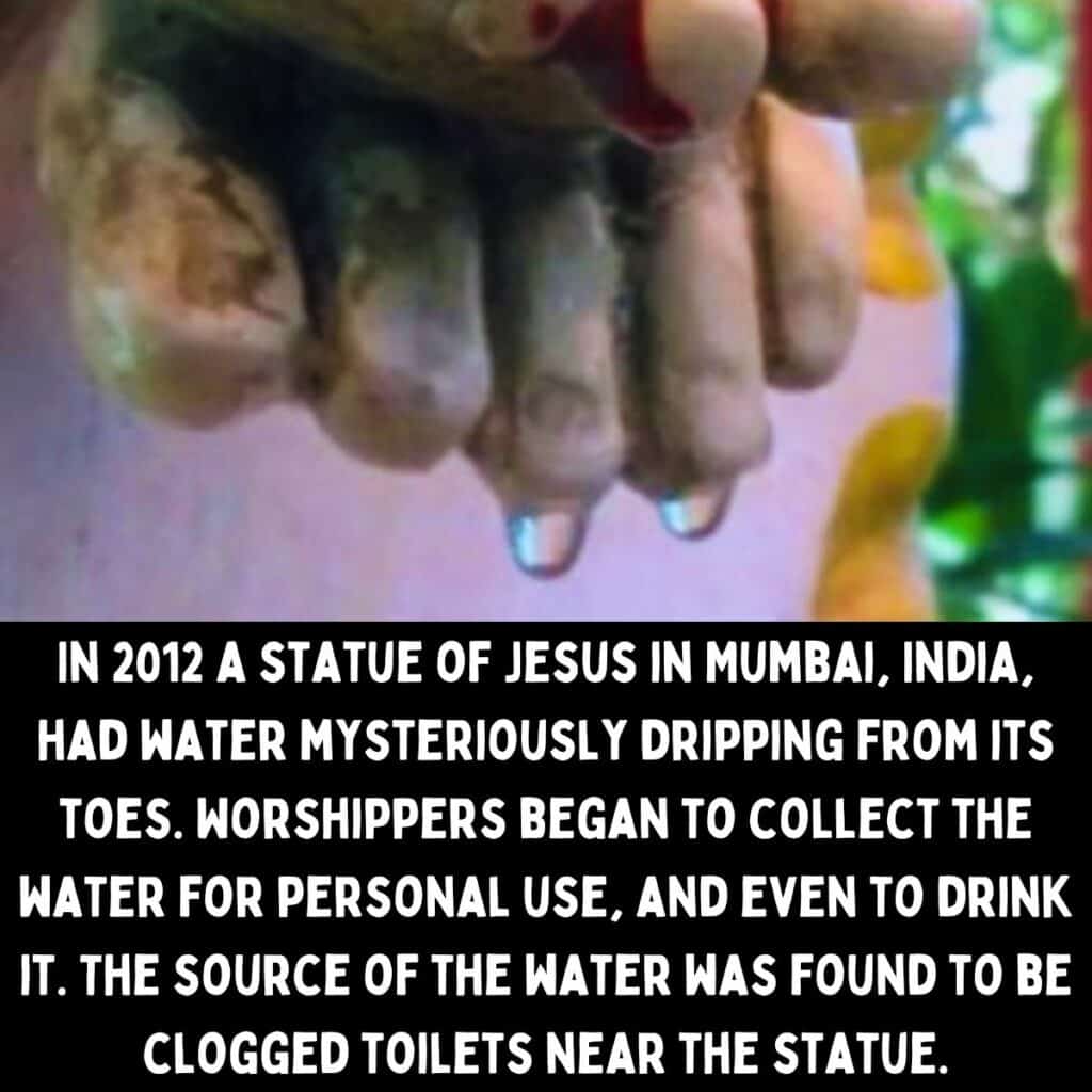 In 2012, a peculiar incident occurred in Mumbai, India, involving a statue of Jesus. Mysterious water dripping from the statue’s toes led to an unusual phenomenon. Devotees, believing it to be a divine occurrence, began collecting the dripping water for various purposes, including consumption.