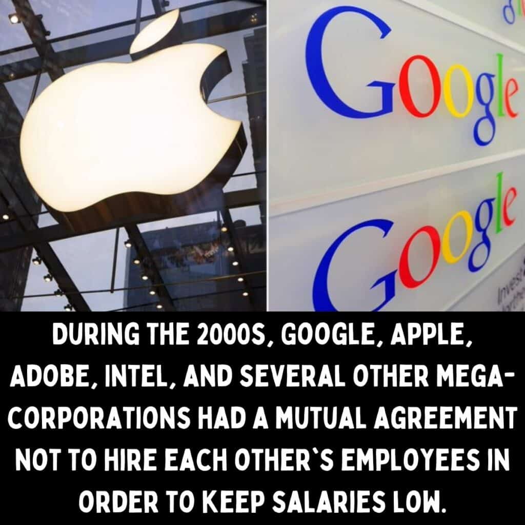 During the 2000s, it is said that some major tech giants, including Google, Apple, Adobe, and Intel, engaged in a controversial practice known as “gentleman’s agreements.” These secret pacts involved an unwritten understanding among these corporations not to actively recruit or hire each other’s employees.