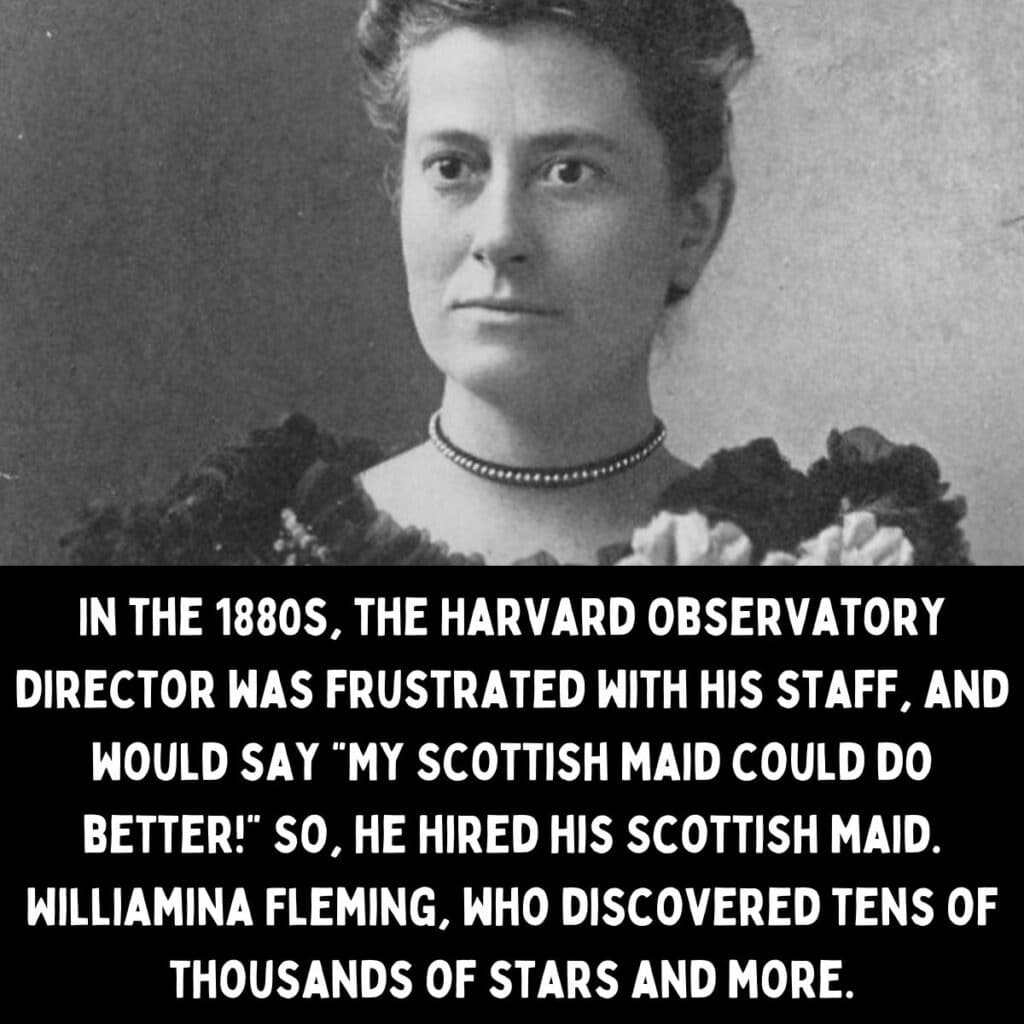In the 1880s, the director of the Harvard Observatory, feeling frustrated with his staff’s performance, used to often exclaim, “My Scottish maid could do better!” In a surprising move, he decided to hire his Scottish maid, Williamina Fleming, to work at the observatory, probably to motivate staff members.