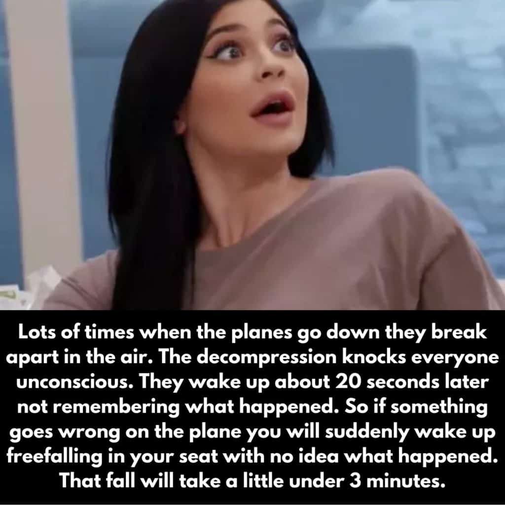 But equally important—and you don’t have to be an airplane engineer to notice the flaw here—is the question of how this person would know. If your plane breaks up mid-air high enough in the atmosphere that sudden decompression knocks you unconscious, and then suddenly you wake up and you’re free-falling from the sky, I think there’s a really good chance that you’re not going to survive the impact with the ground. So how do they know that this is what people experience?