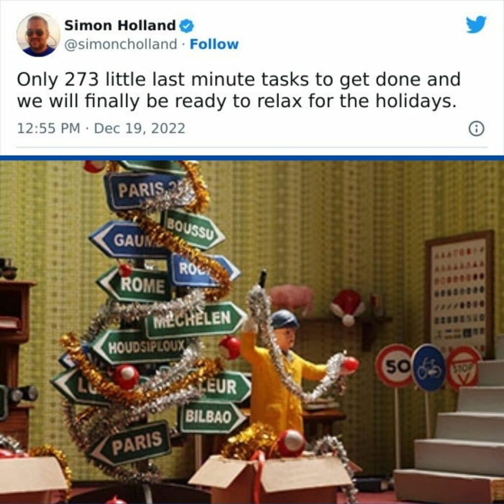 The holiday to-do list: where “just one more thing” multiplies faster than reindeer on a rooftop. The OP’s tweet is a jolly nod to the pre-holiday hustle that turns us all into multitasking elves, ticking off tasks like we’re aiming for the Nice List.