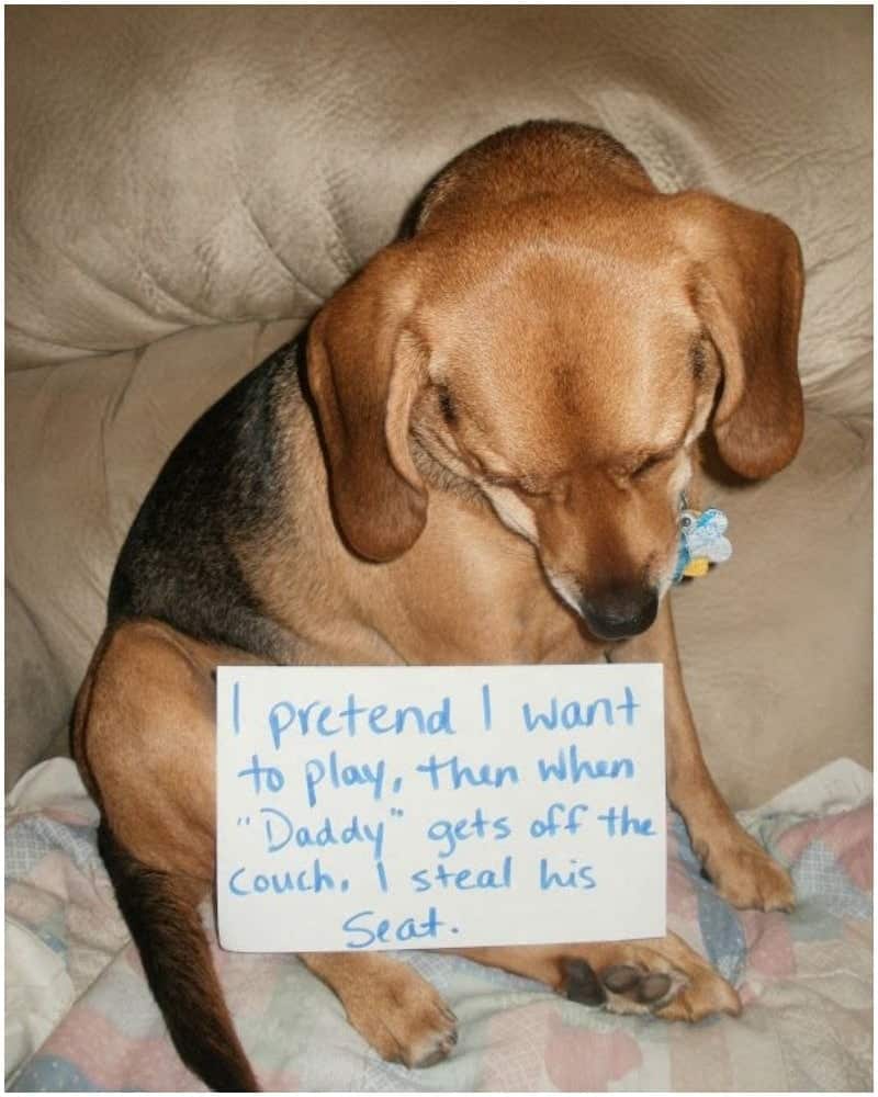 This little guy is no different. While most dogs who aren’t allowed on the couch wait for the human to leave the house before they take over the living room, this dog has another method. He pretends like he wants to play, and when his father gets up, he swifts in and takes over the best seat in the house.