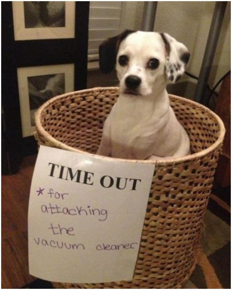 It depends on who you ask. This family seems to think a “time out” is an effective punishment for dogs, but we beg to differ. Children might spend their time out reflecting on their behavior, but dogs forget what they did wrong pretty quickly.