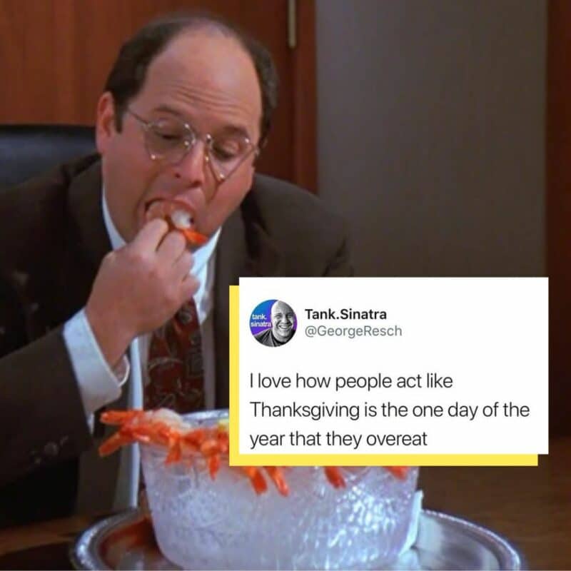 Alright, so I have talked a lot about how Thanksgiving is the one day of the year that is dedicated to overeating, but if I’m perfectly honest, I have to admit that, as this person pointed out on Twitter, it’s not the only day that we overeat. Let’s be honest here; this is a judgment-free zone.