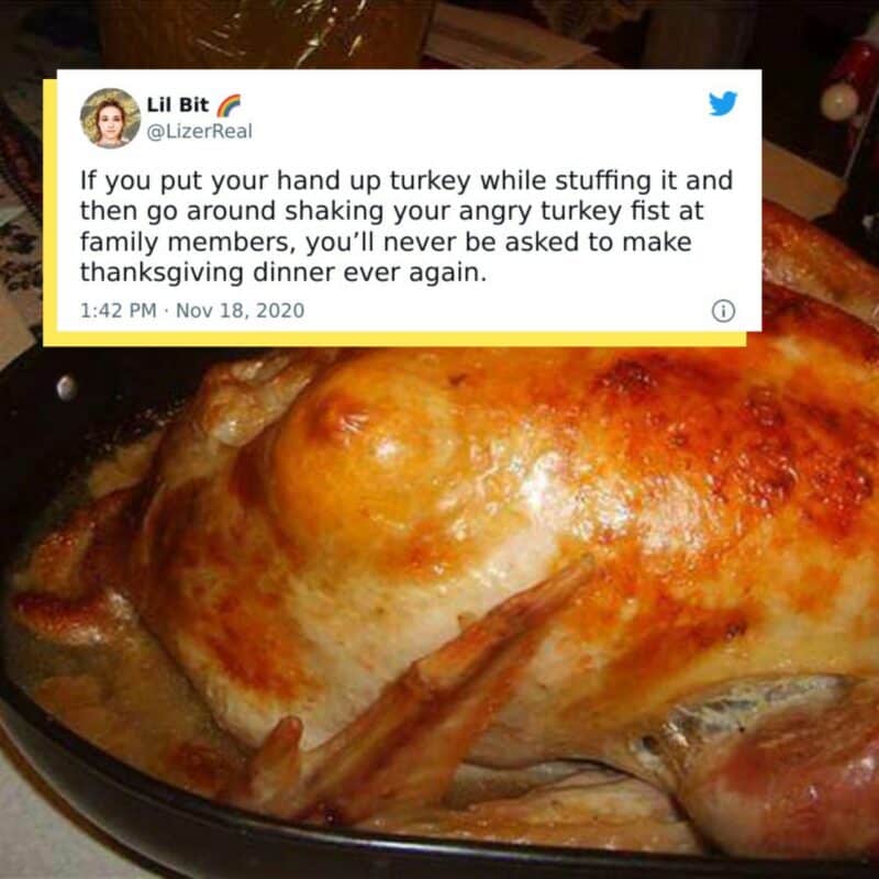But if that’s not really your scene, no worries! This person has a great tip for how to alarm your family members enough that they never ask you to make Thanksgiving dinner again. I guess there are other ways to get out of cooking on the holiday, but this one sounds like fun.