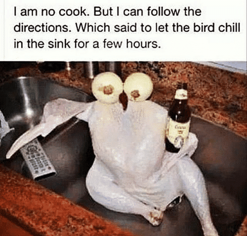 The number two mistake that people make when trying to roast a turkey is to misunderstand the instructions. The trouble with an event like this is that once you have personified the turkey and given it eyes and let it watch Netflix in your sink, you’re going to get attached, and then you’re going to want to keep the frozen turkey as a pet rather than cook it. This is a rookie mistake.