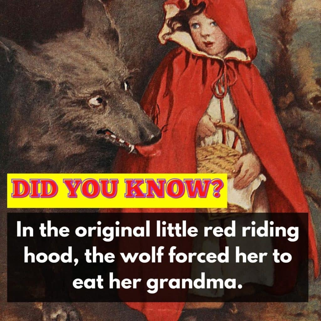 In the “Little Red Riding Hood” that we know and love, Little Red and her grandmother survive the scary ordeal and continue about their lives. However, we didn’t know that in the original “Little Red Riding Hood,” the wolf forces Little Red to eat her grandmother… How was this ever considered to be a story for children?