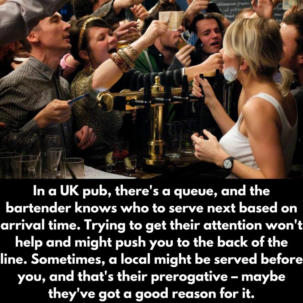 An invisible, magic queue at a pub? That sounds about right. Kudos to the bartender for being able to keep track of all that going on while also taking orders, preparing drinks, and entertaining patrons. Being a bartender is a hell of a lot of work, and this just adds another layer to it.