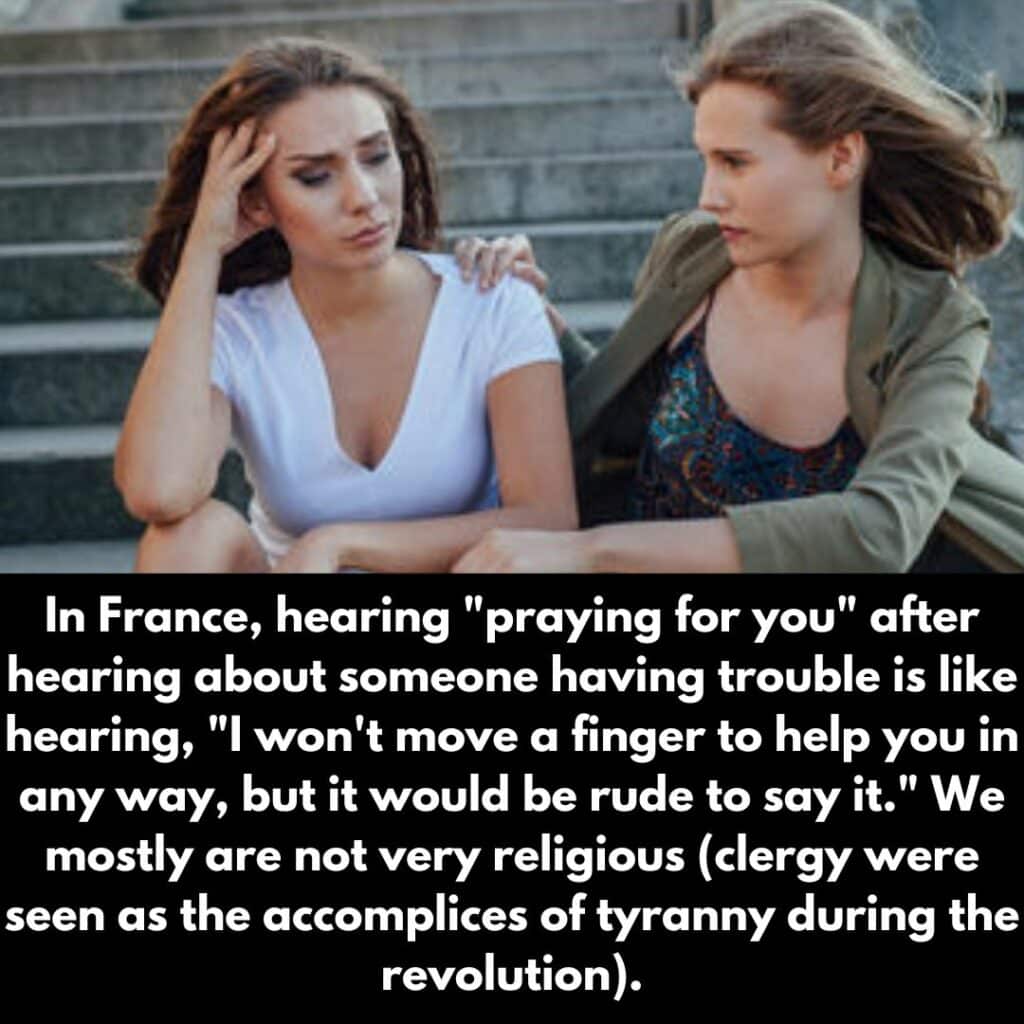 Even in a religious society, telling someone that you’ll pray for them can come across as disingenuous. Praying is all fine and good, and some people are well-meaning and the like, but it’s not really a show of sympathy, and it’s not really particularly helpful either.