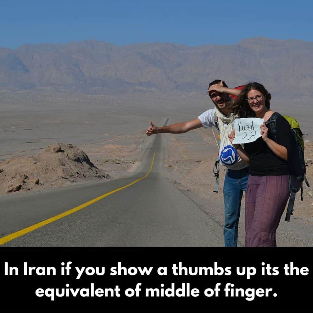 It’s true; it’s really not polite to show your thumb when out and about in Iran. Unfortunately, this provides a bit of a problem for potential hitchhikers, given the fact that in places like the US, you use your thumb to try and get the attention of passing drivers so they can stop and pick you up.