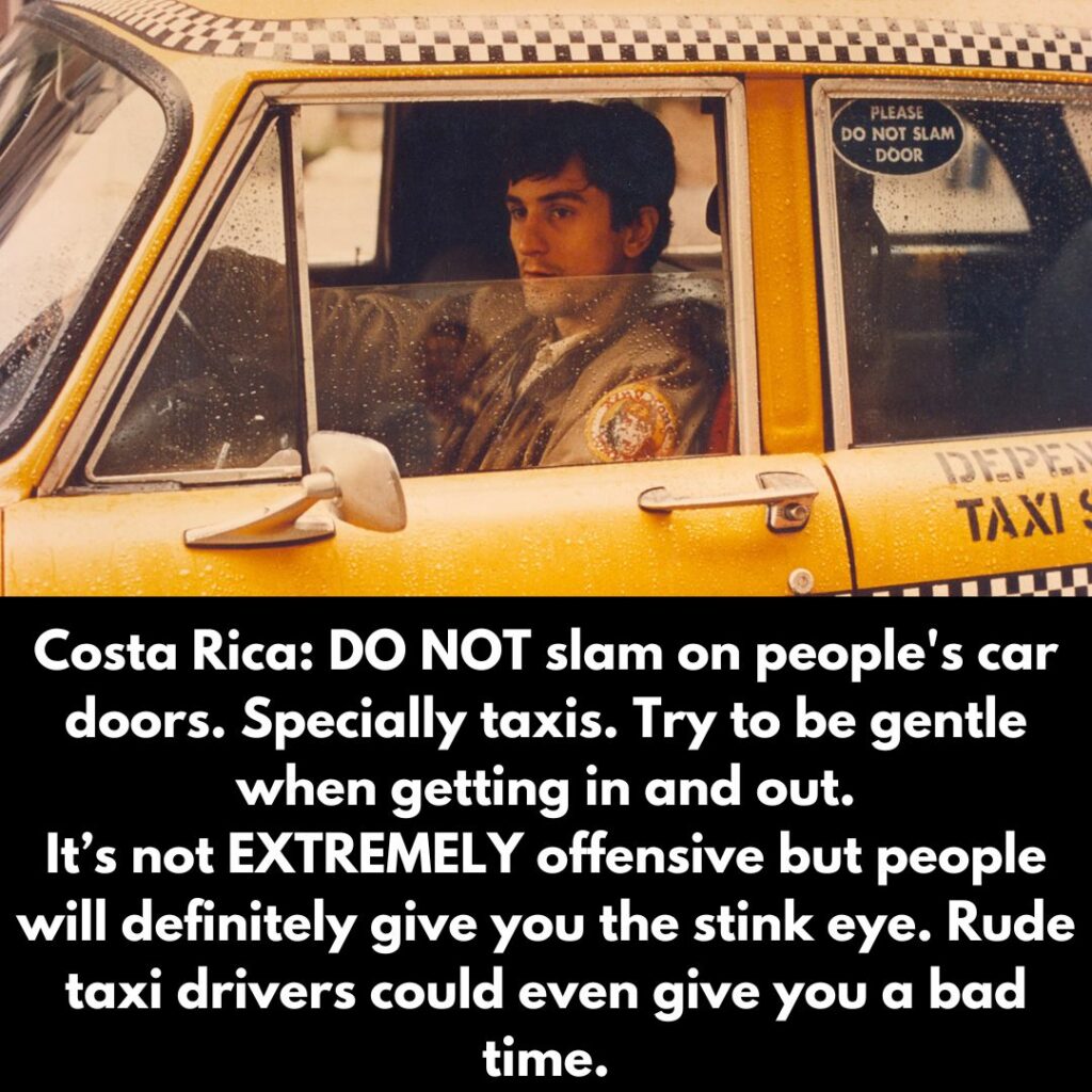 This is not limited to Costa Rica, I have definitely been yelled at for slamming a door too hard before. I’ve also been yelled at for not closing it hard enough and for it not to register as properly closed in the car. Then you get the fun open-the-car-while-it’s-moving moment to close it quickly and properly again.