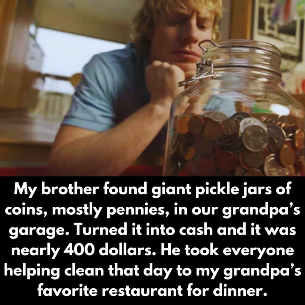 This family would never understand why their grandma kept full jars of pennies in their grandpa’s garage. Was it some sort of a vintage collection, or was it cash he was saving for a rainy day? While they may never know the answer, they used these 400 dollars (in pennies!) to treat themselves to a nice meal at their grandpa’s favorite restaurant in his honor.