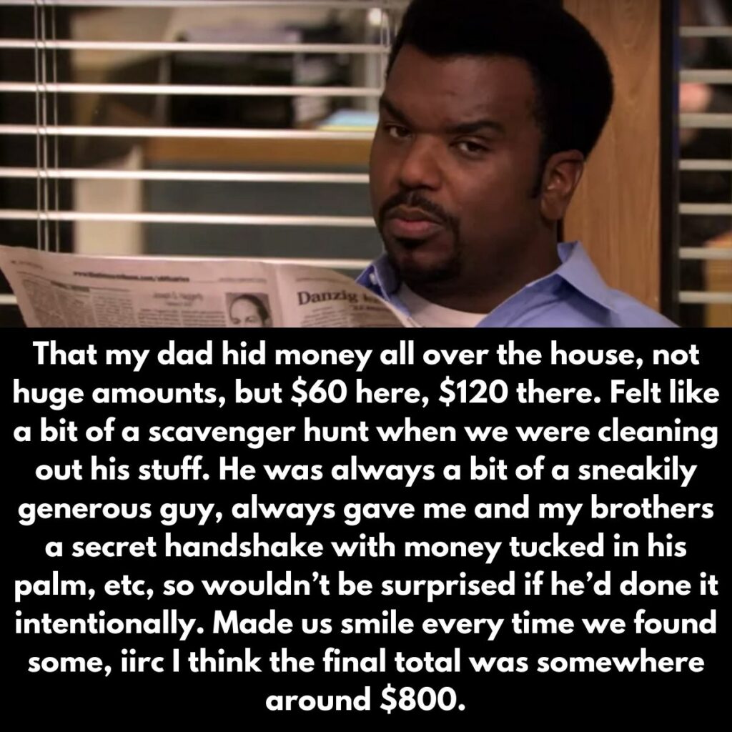 But what this person’s father did is different; he didn’t just hide an amount of cash somewhere safe in his house – he scattered bits of cash that accrued to 800 dollars around the apartment. Was he expecting his kids to someday clean out his home and enjoy this little treasure hunt? That’s what his children suspect, and it made them pretty happy.